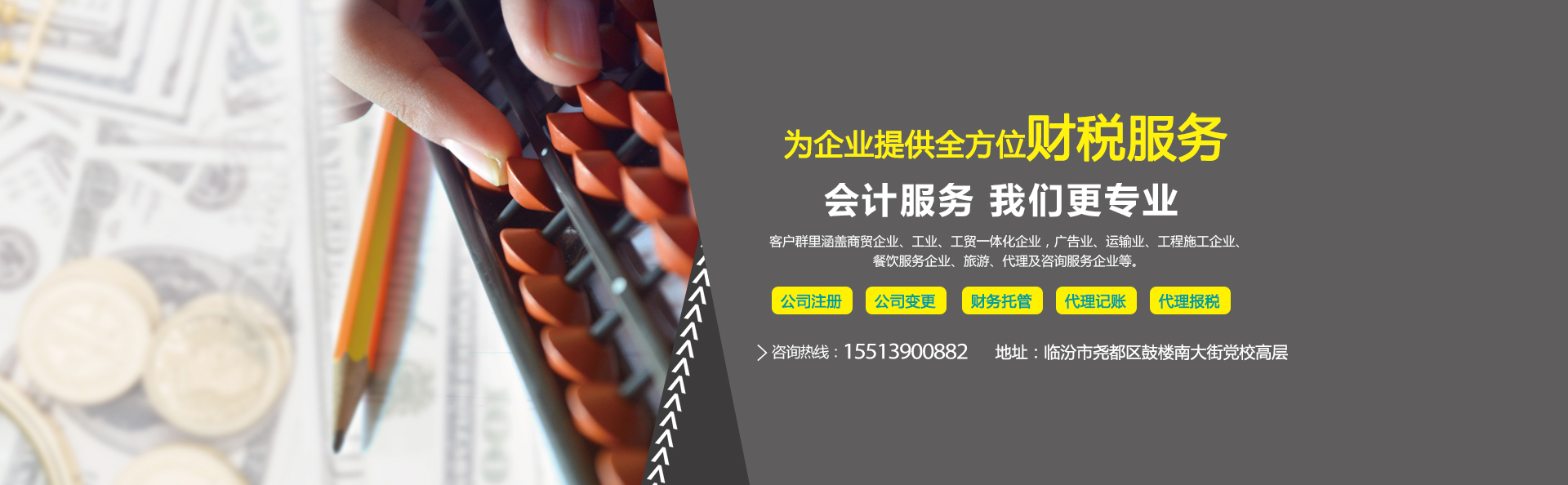 山西華夏智誠企業(yè)管理咨詢有限公司創(chuàng)立于2017年, 是為企業(yè)提供*********財稅服務(wù)的專業(yè)服務(wù)平臺。本著“誠信為本,服務(wù)至上”的企業(yè)理念,有著專業(yè)精深的專業(yè)水平和豐富經(jīng)驗,為企業(yè)進(jìn)行會計服務(wù)。客戶群里涵蓋商貿(mào)企業(yè)、工業(yè)、工貿(mào)一體化企業(yè),廣告業(yè)、運(yùn)輸業(yè)、工程施工企業(yè)、餐飲服務(wù)企業(yè)、旅游、代理及咨詢服務(wù)企業(yè)等。